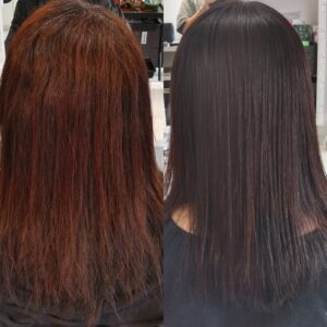 ✅ 暗い白髪染めを続けると「残留色素」が蓄積し、後から明るくすることが難しくなる