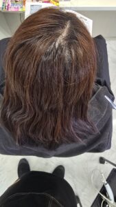 ここにまた白髪染めを重ねてしまうと、どんどん暗く・どんどん赤くなっていく一方なんです。