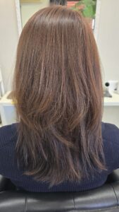 今回は、根元を白髪染め・毛先をファッションカラーで塗り分けて、赤みを消したお客様のビフォーアフターをご紹介します。