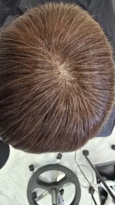 白髪はいわば「ブリーチをした状態」に近いベースです。そこに色を乗せるため、透明感が出やすく、全体的に明るく仕上がりやすいんです。