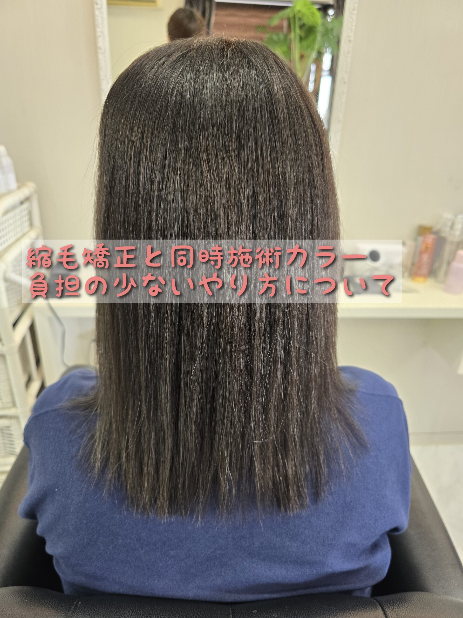 こんにちは。 前回の続きではありますが、縮毛矯正と全体ヘアカラーのダメージを少な…
